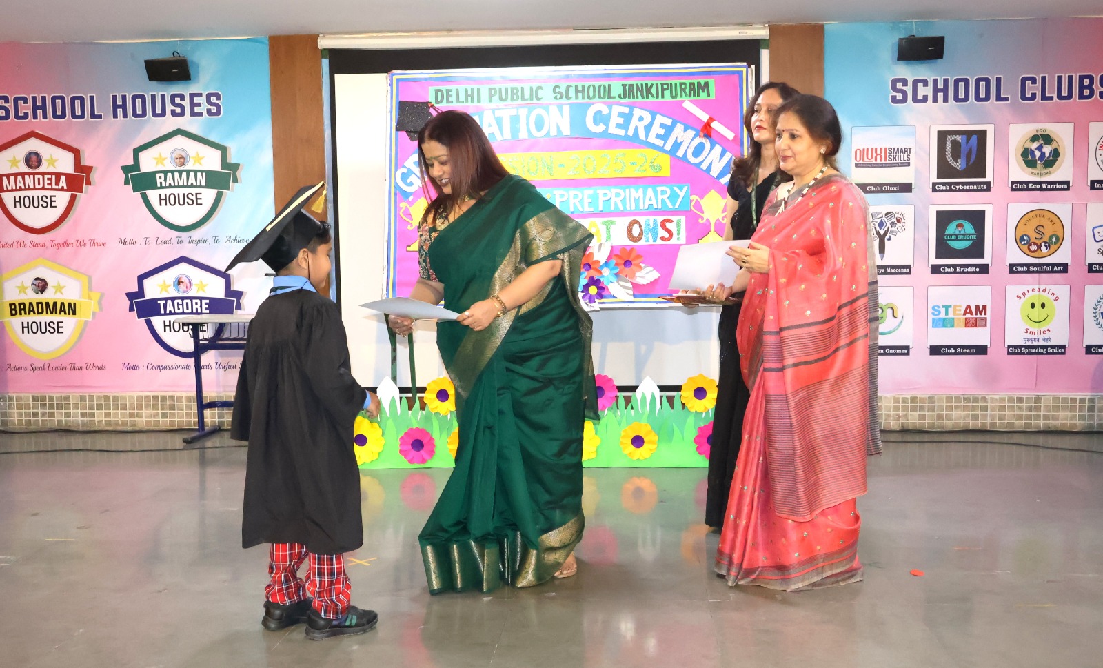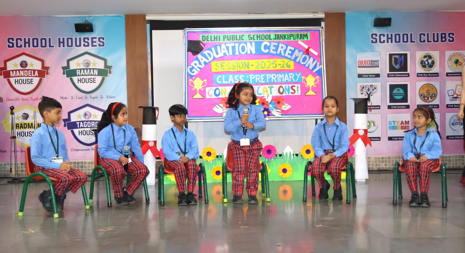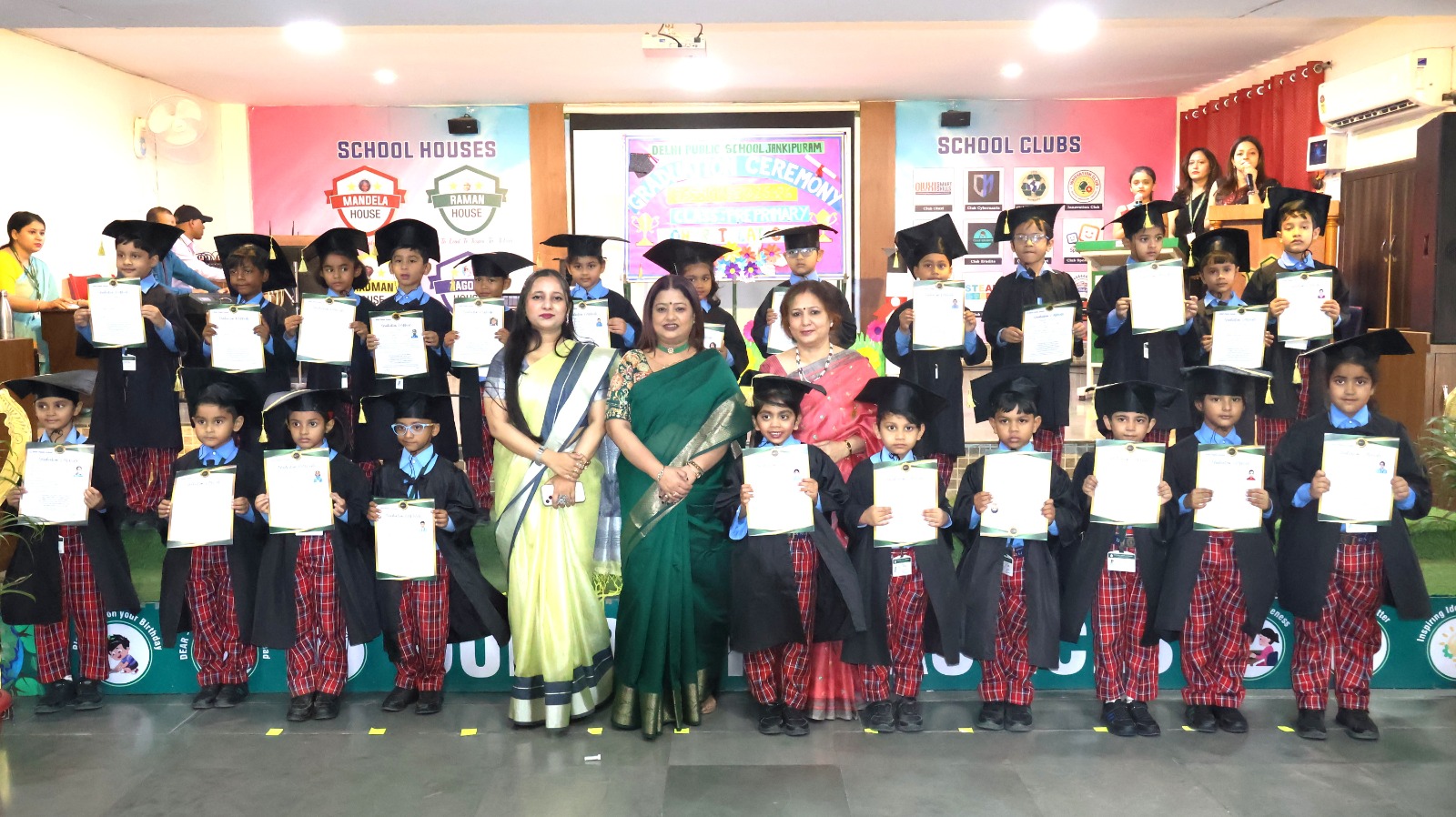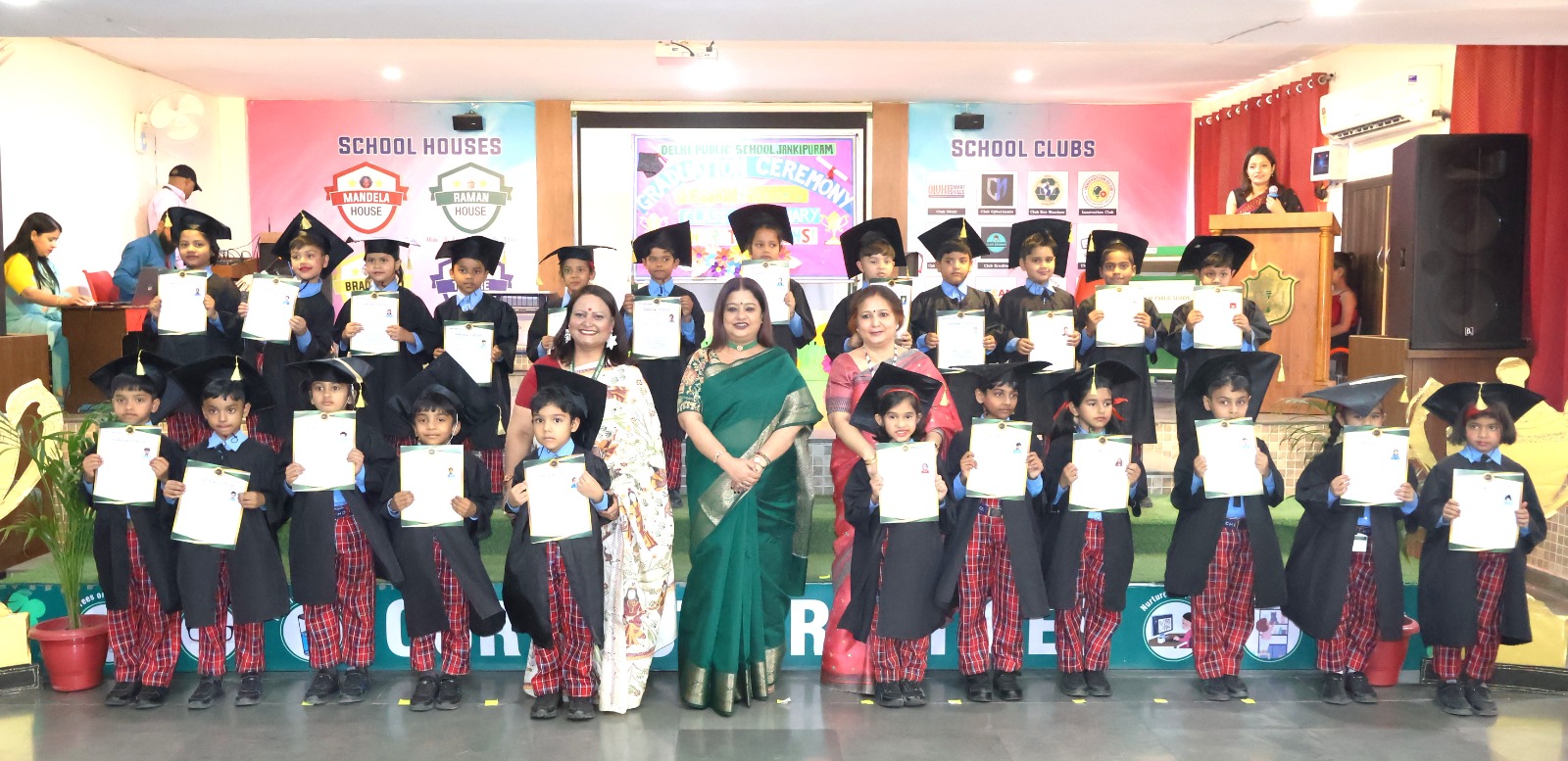 The little graduates of DPS Jankipuram walked onto the stage to receive their certificates, marking an important milestone in their early educational journey. The moments were further cherished with a group photograph of the young graduates.